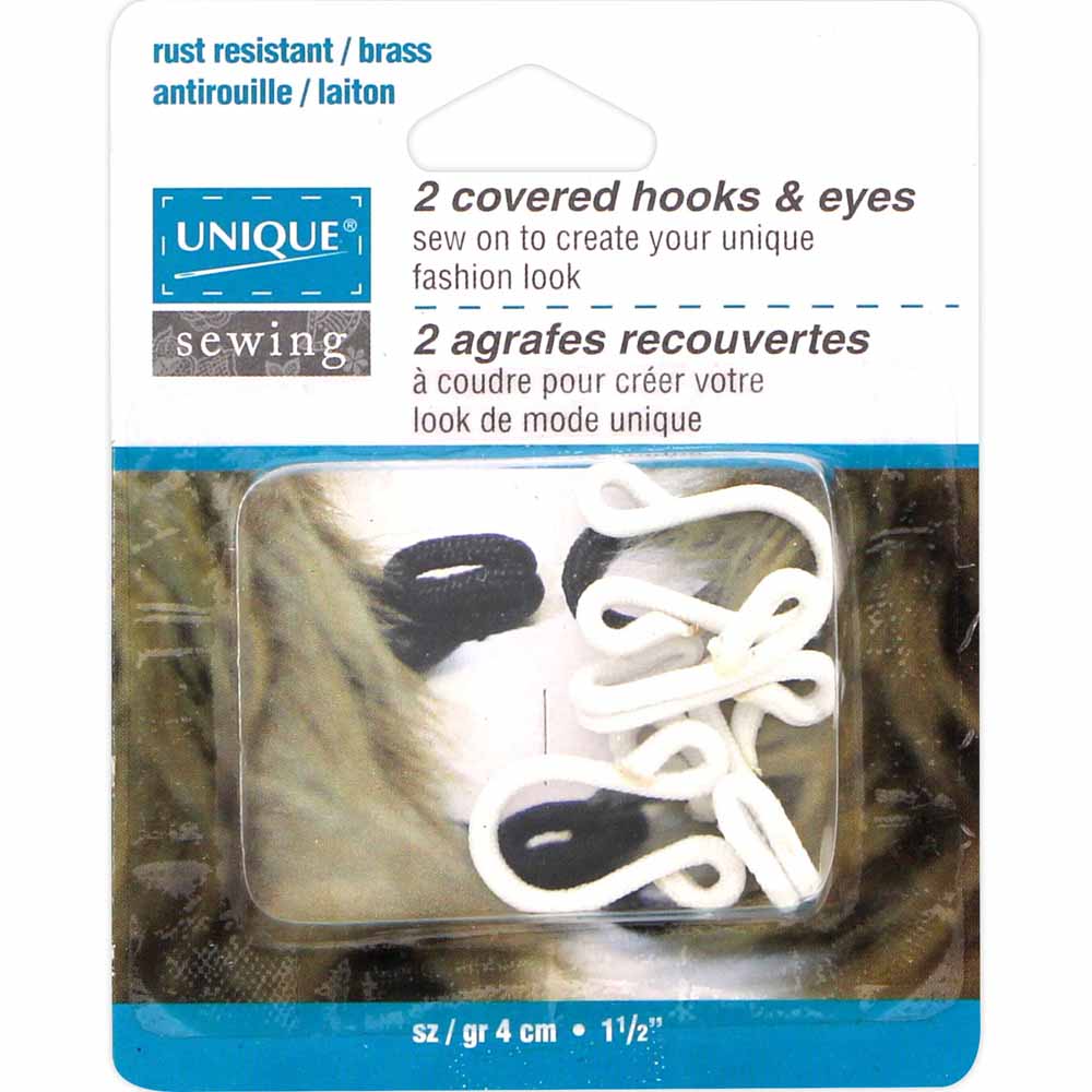 Add a polished, professional touch to your garments with these unique covered hook and eye fasteners. Perfect for jackets, coats, fur garments, and any project requiring a secure yet elegant closure.